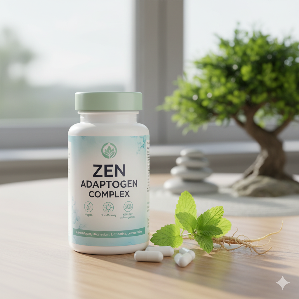 Find your calm in the midst of chaos with our Zen Adaptogen Complex. Featuring clinically-studied Ashwagandha, Magnesium, and calming herbs, this formula is designed to help your body manage stress. It may help to promote a sense of relaxation and support a balanced mood.